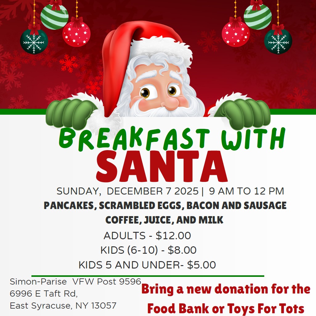 Come out on Sunday December 7th for a Pancake Breakfast with Santa!