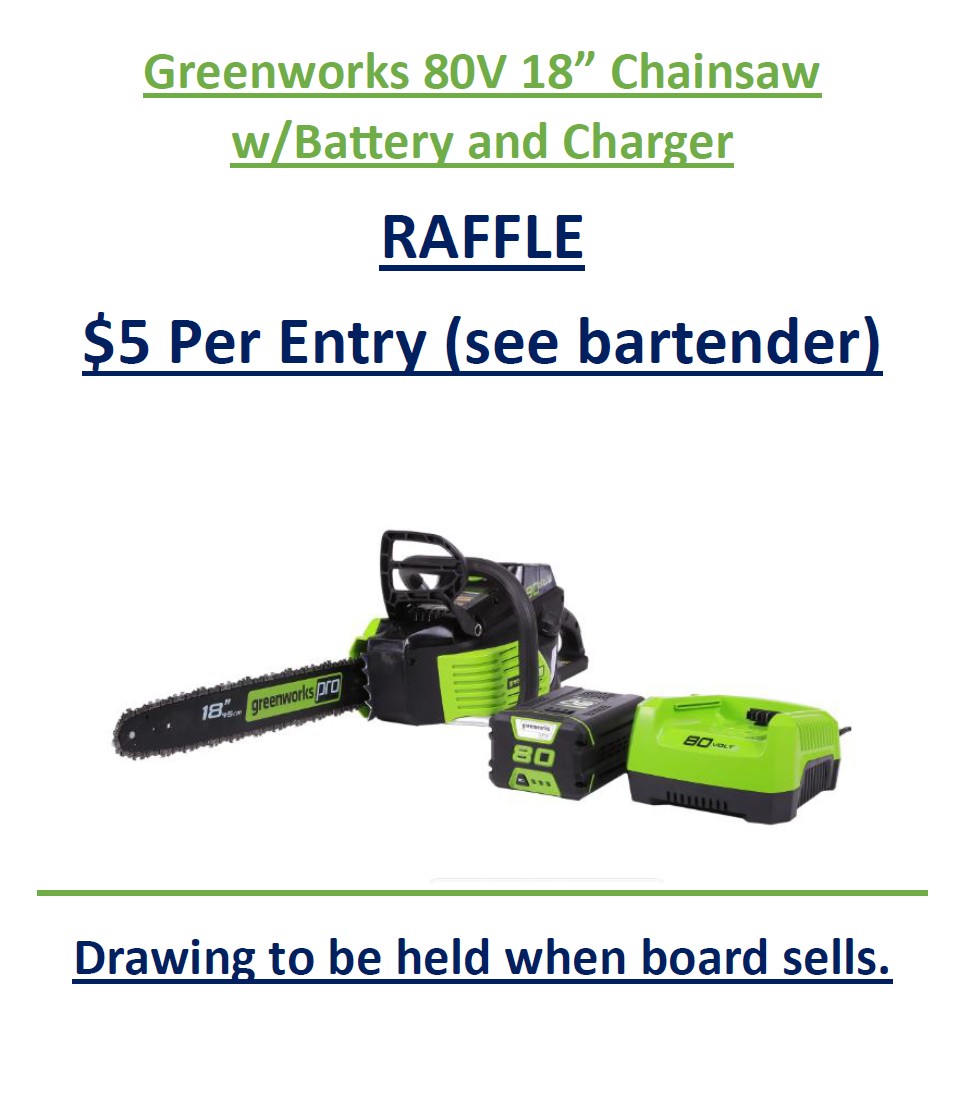 Our new Raffle is live! Come in and get your tickets for a chance to win a Greenworks 18" 80V cordless chainsaw just in time for cutting up some fall firewood.